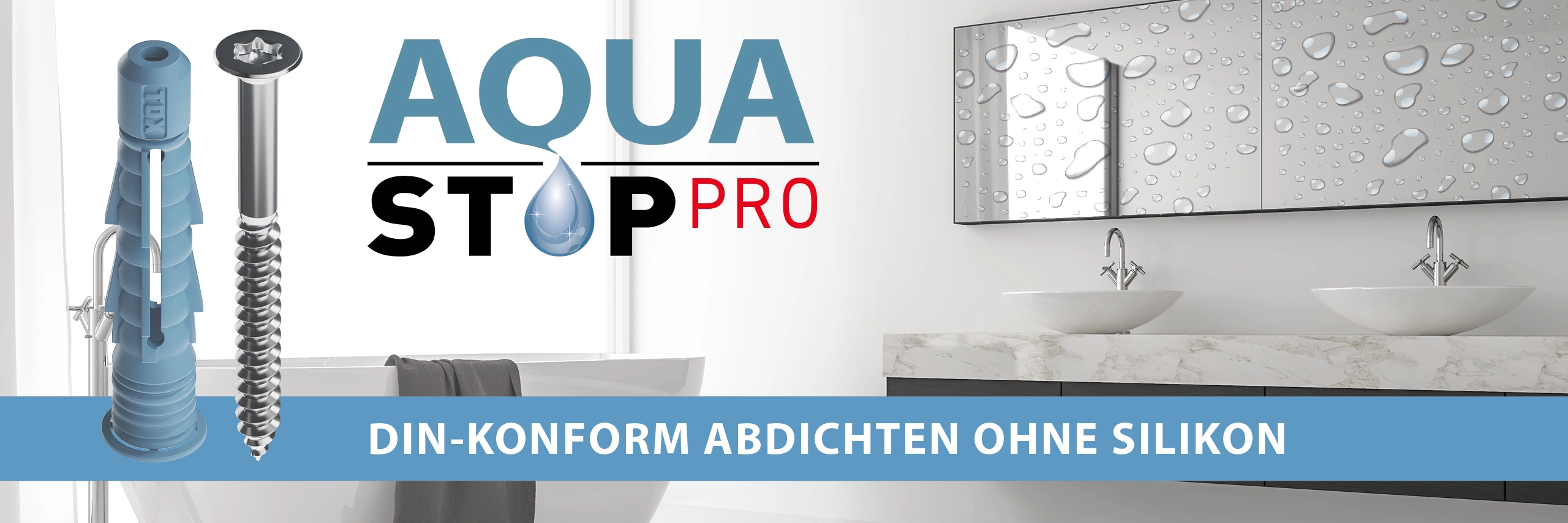 Seit Oktober 2025 in Deutschland (DIN 18534) und Mai 2025 in der Schweiz (SIA 271/1) gelten überarbeitete Regelwerke für Abdichtungen in Nassbereichen. Beide Normen legen verstärkt Wert auf dauerhaft dichte, nachträgliche Befestigungen, bei denen abdichtende Dübel mit nachgewiesener Eignung eingesetzt werden sollen. Der Aqua Stop Pro erfüllt diese Anforderungen und bietet eine sichere, normgerechte und silikonfreie Lösung für Befestigungen an gefliesten Wänden in Bad, Dusche und Küche.