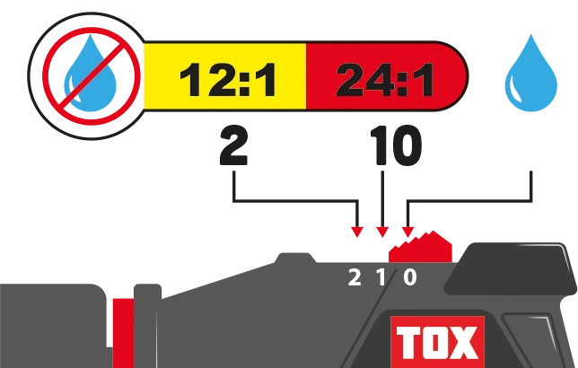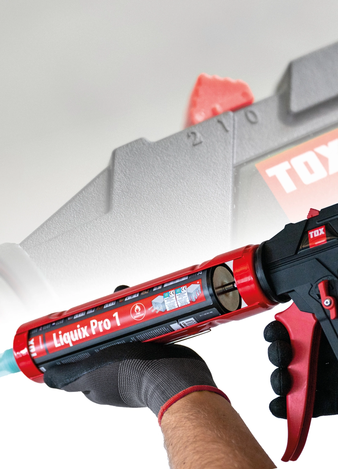 Die TOX Auspresspistole Liquix Blaster Switch ist die vielseitige Lösung für alle gängigen Verbundmörtel-, Silikon- und Klebekartuschen. Mit ihrem umschaltbaren Übersetzungsverhältnis von 12:1 oder 24:1 ermöglicht sie eine exakte Dosierung je nach Material – von leichtem Silikon bis hin zu hochviskosem Verbundmörtel. Der robuste Metallrahmen, eine gehärtete Vorschubstange sowie der ergonomische, rutschfeste Griff sorgen für lange Lebensdauer, sicheren Halt und komfortables Arbeiten. Praktische Funktionen wie der zuschaltbare Nachlaufstopp, der integrierte Aufstechdorn und ein ausklappbarer Gürtelhaken machen die Pistole besonders anwenderfreundlich und zuverlässig im täglichen Einsatz.